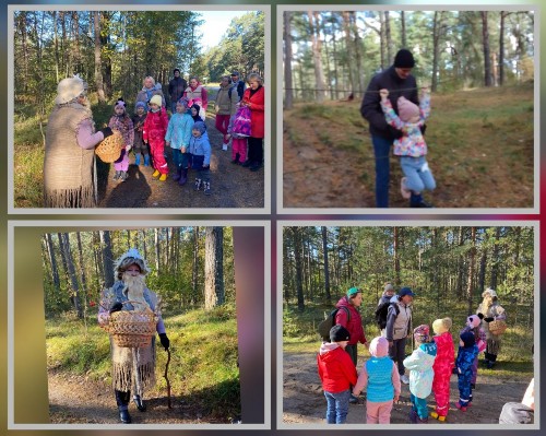 Подойдя к лесу туристят встретил Старичок-лесовичок, с которым все вместе вспомнили правила поведения в лесу, в походе, повторили, что нужно брать с собой в поход, поиграли в игру «Съедобное-несъедобное», «зарядились» хорошим настроением и отправились навстречу приключениям.